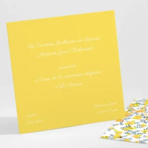 Pour réaliser votre carton d’invitation mariage sur mesure, notre logiciel en ligne vous permet de modifier facilement votre contenu et votre mise en page et d’essayer d’autres calligraphies. Notre équipe technique se charge de peaufiner votre maquette et de vérifier le texte et la qualité des images intégrées. Pensez à décliner votre billet d’invitation et à le compléter d’un carton réponse que vous glisserez avec votre faire-part mariage dans un même pli.