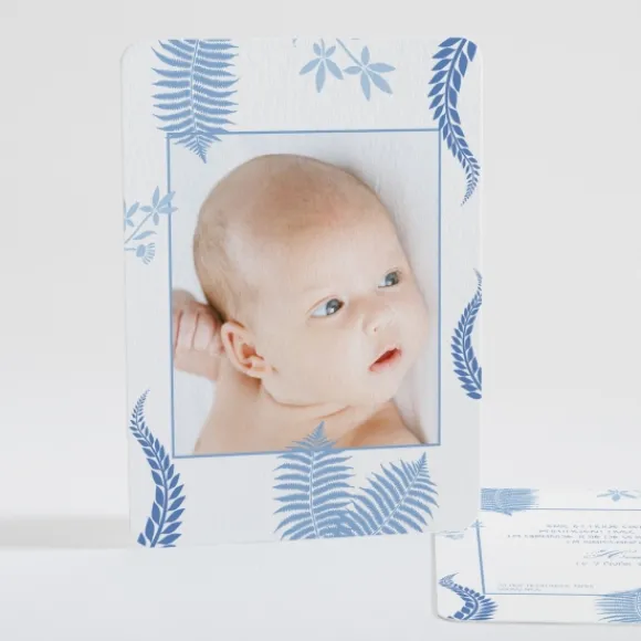 Votre bébé présenté à vos proches grâce à un faire part naissance dans une nature délicatement illustrée. Faites le choix d’un joli faire part naissance végétal pour votre petite fille ou votre garçon. La photo de votre bébé apparaît ornée de feuilles de fougère et de plantes luxuriantes délicatement dessinées. Cette carte de naissance mise sur des illustrations végétales aux traits fins et élégants afin de mettre en valeur la photo de votre bébé tout comme votre texte de présentation.