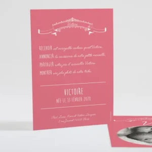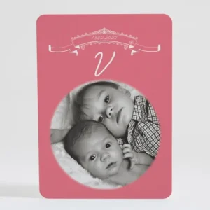 Vous souhaitez annoncer l’arrivée de votre enfant de manière ludique et originale ? Nous vous proposons de le faire avec ce faire-part de naissance innovant et contemporain. Au format carte postale verticale, ce faire-part naissance adopte la forme d’un manifeste. En en-tête une ravissante banderole avec le prénom de votre enfant couronne un texte drôle et charmant que vous pourrez adapter à votre convenance. De l’autre côté, reprenant la même couleur et le même design, un espace circulaire accueillera le plus joli cliché de votre bébé. Entièrement personnalisable, cette carte naissance convient aussi bien pour la naissance d’une petite fille que pour celle d’un petit garçon.
